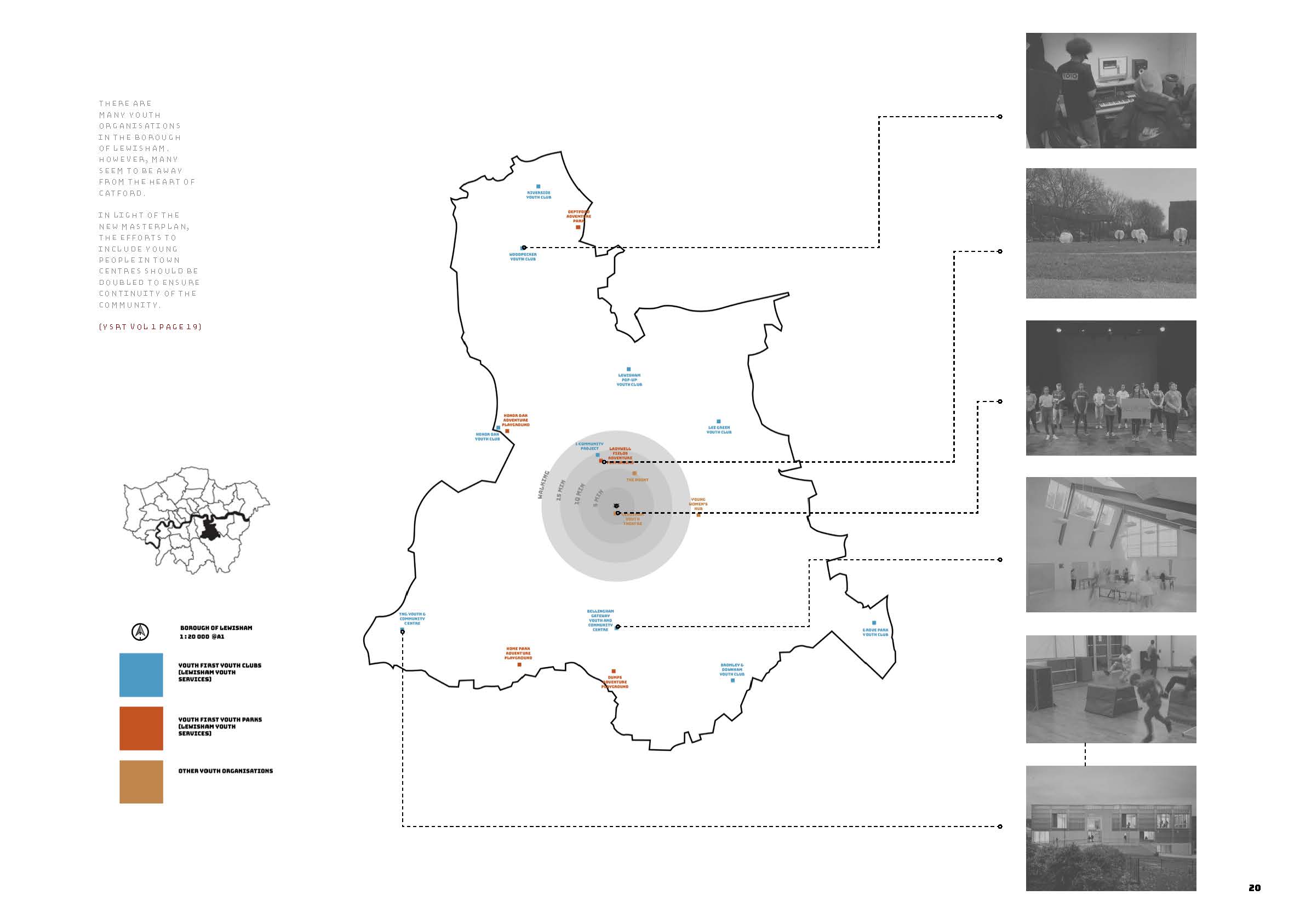 We began our independant research on a hunch: I decided to investigate the “absence” of young people in the town centre and the lack of provision for young people in the Catford Masterplan proposal.